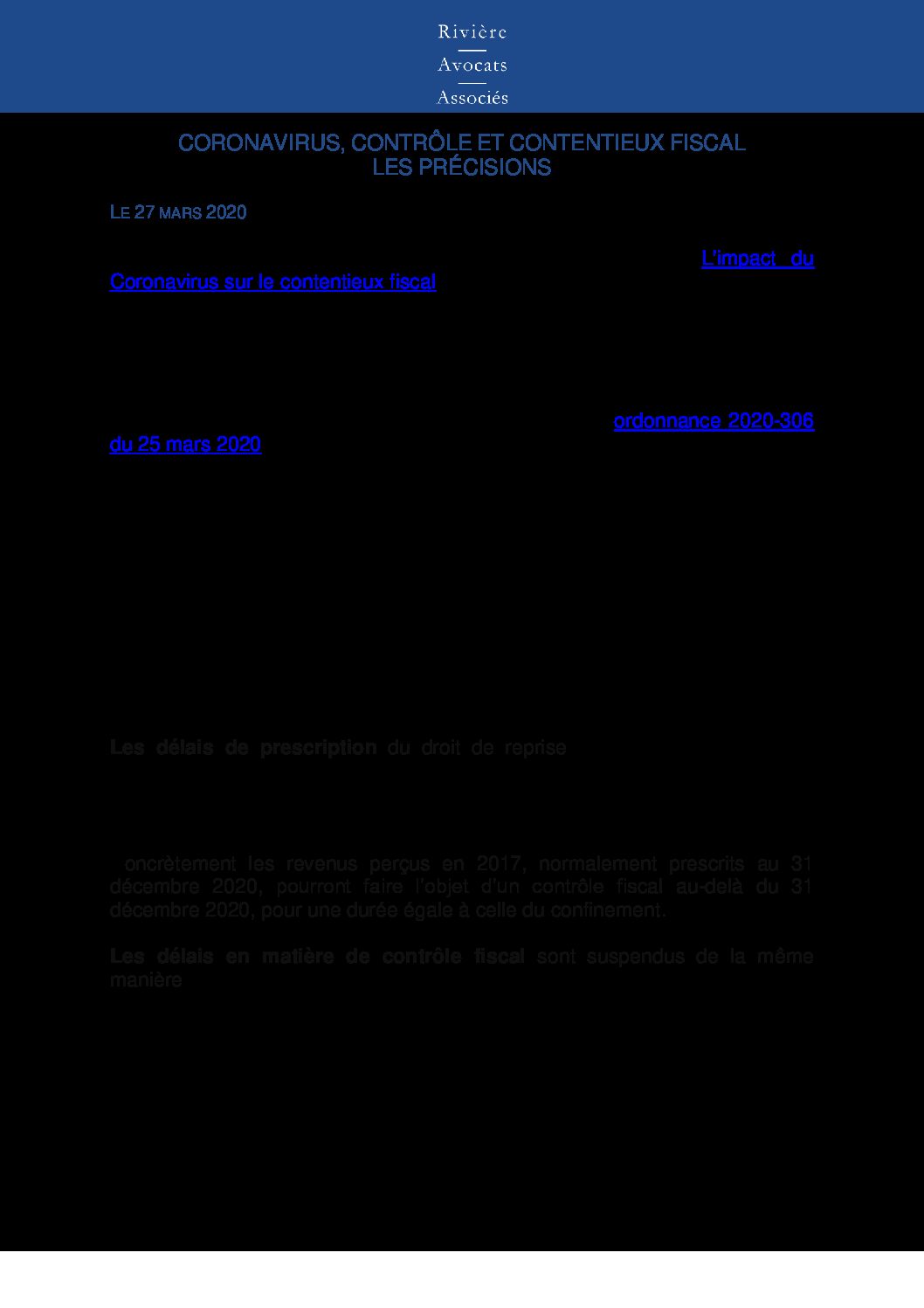 Corona virus – controle et contentieux fiscal, les précisions Vdef