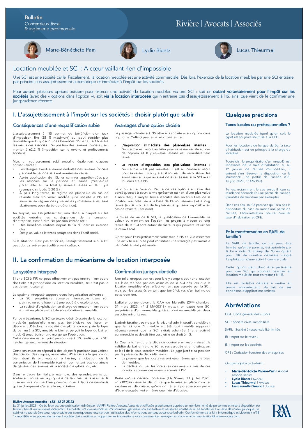 Bulletin SCI et location meublée