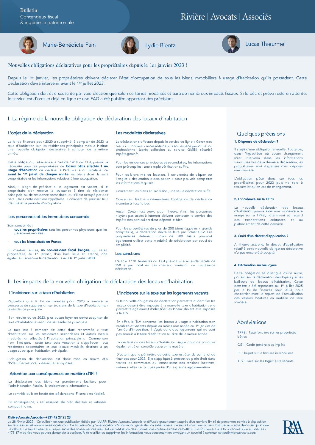 Bulletin – Nouvelle obligation déclarative