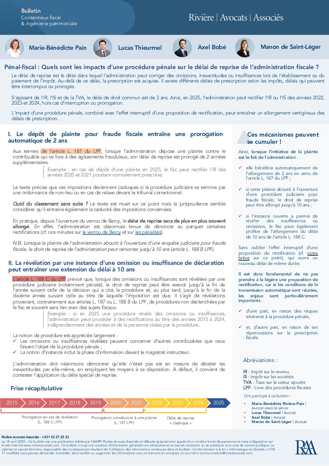 Bulletin – Procédure pénale et prescription fiscale