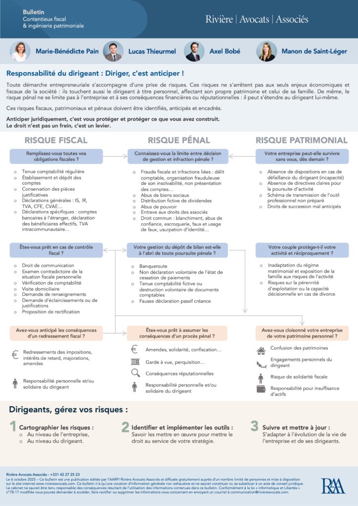 Ces risques fiscaux, patrimoniaux et pénaux doivent être identifiés, anticipés et encadrés.
