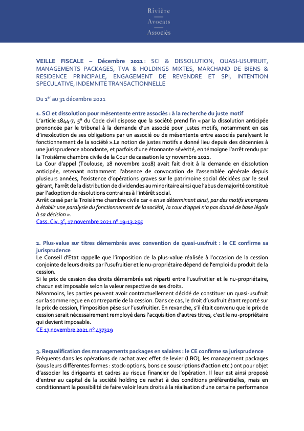 VEILLE FISCALE – Décembre 2021 image