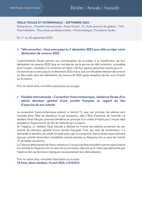 Veille fiscale septembre 2023