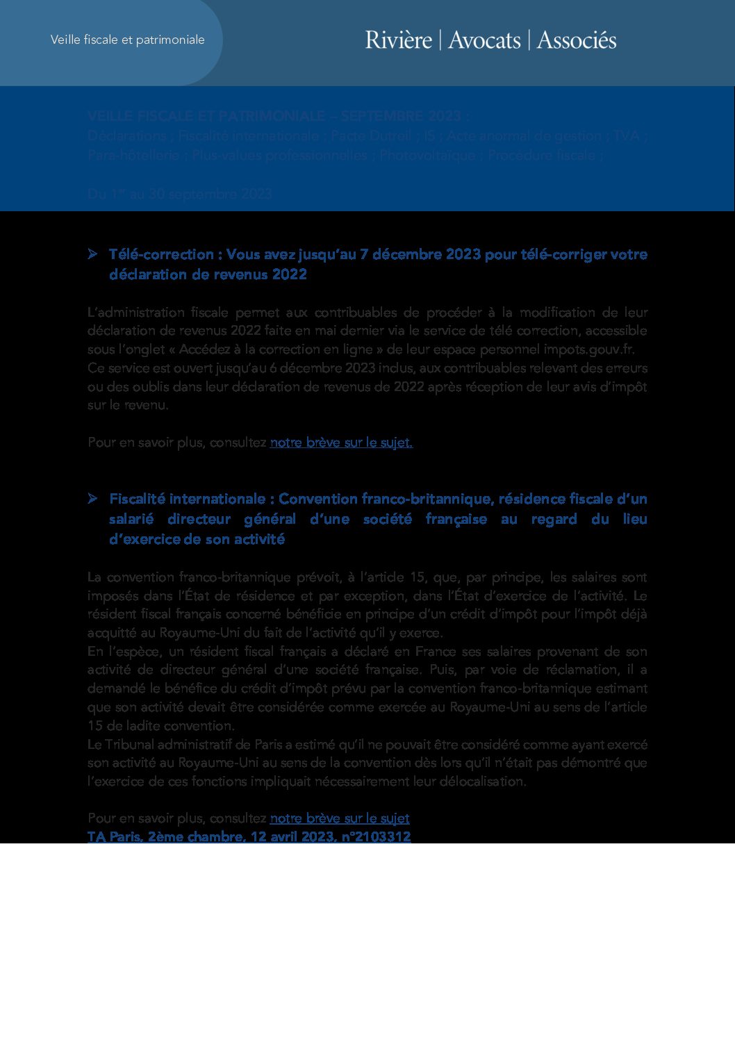 Veille fiscale septembre 2023